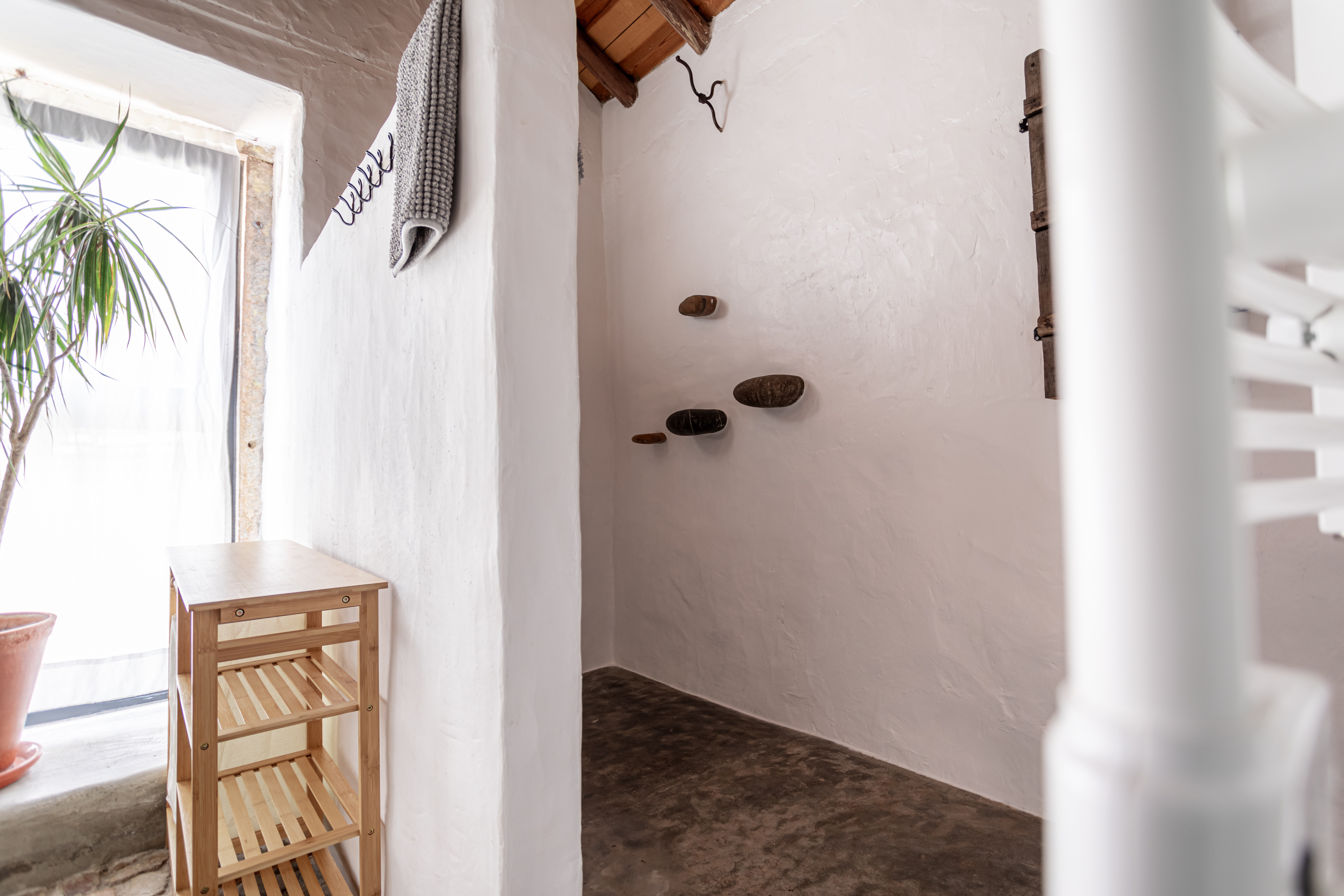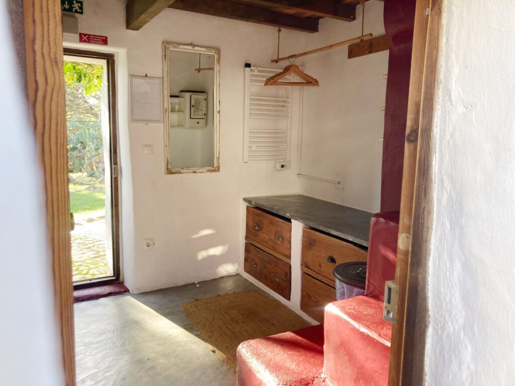 Casa Celeiro is an open plan house with 3 beds, a simple kitchenette with fridge, cosy fireplace and seating area.