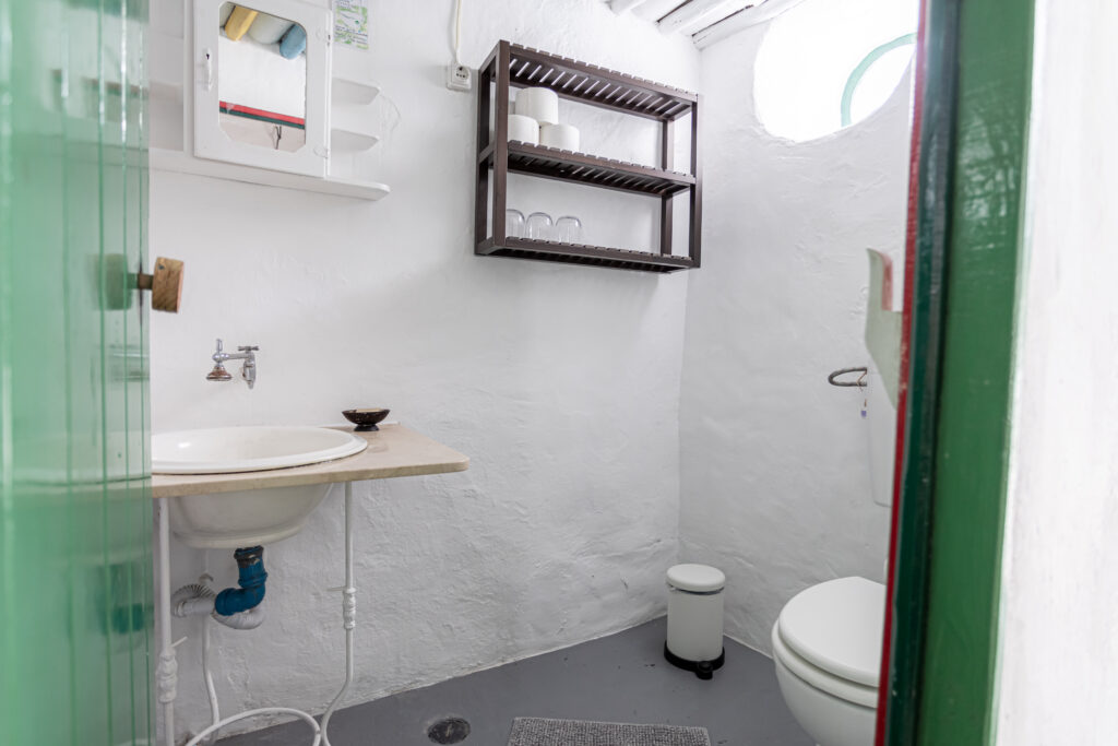 The house hosts 3 guests in total (1 double bed upstairs and 2 single beds downstairs) and you’ll all share the bathroom.